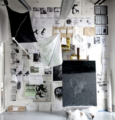 ![]() Paint on wall / two A4 sheets of paper / metal clip 2009 |